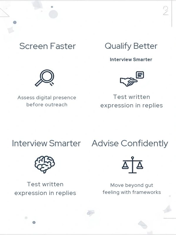 Vibe Score™ measures what algorithms can’t: tone, storytelling, soft skills, and your professional footprint across documents and digital spaces. Providing clarity on who will actually thrive with your team.